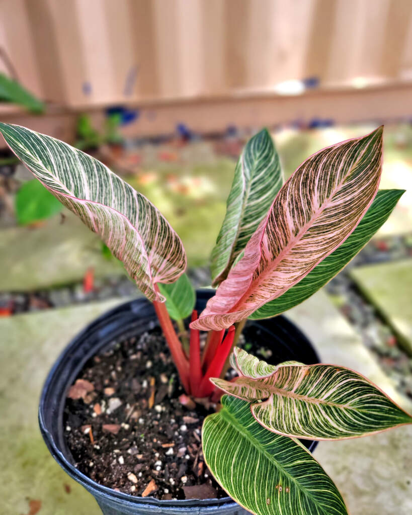 Also known as Philodendron superbum, this easy to grow philodendron is hard to find and highly sought after for its exceptional aesthetics. The elongated, glossy leaves with contrasting white veins are also beautiful underneath with red veins. The stems have pinkish hues and white streaks. Although vigorous growers outdoors, they are relatively slow growing as a houseplant.