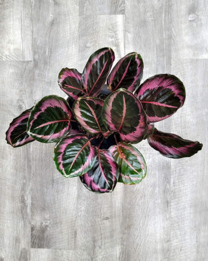 For those that love prayer plants, the Calathea Rosy is one that will definitely stand out in even the most diverse collections. This cultivar of the Calathea roseopicta is easily distinguished from other painted prayer plants by the deep magenta and pink colorations that are found on the top side of the oval-shaped foliage.