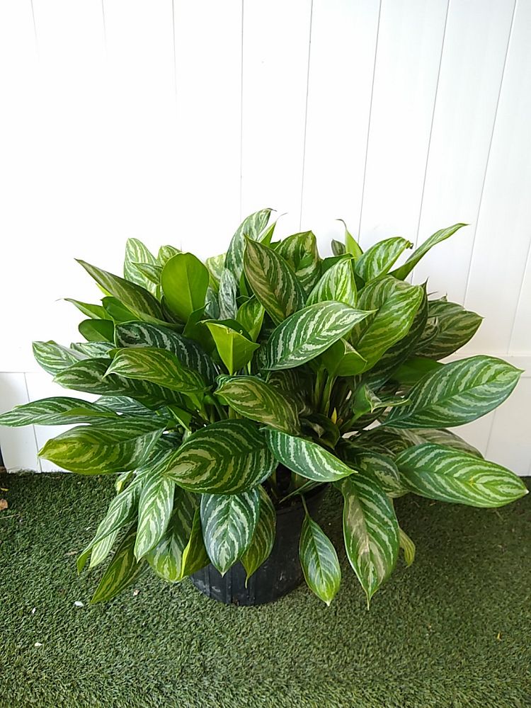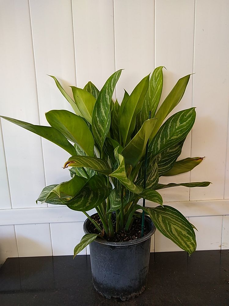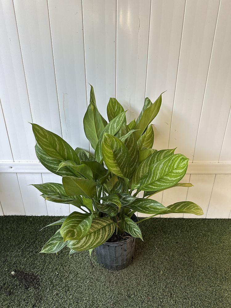 Overview: Aglaonema ‘Stripes’, commonly referred to as Chinese evergreen, is a highly sought-after, ornamental houseplant known for its striking foliage and easy-care nature. This cultivar is characterized by its large, oval-shaped leaves with bold, white stripes that contrast elegantly against a rich, dark green background. This eye-catching pattern adds a touch of visual interest and a tropical vibe to any indoor space.