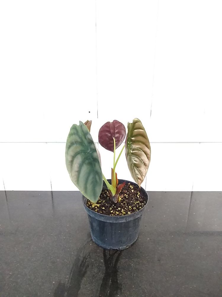 Overview: Alocasia cuprea ‘Red Secret’, an exotic houseplant, boasts mesmerizing foliage that’s a sight to behold. The plant’s name ‘Cuprea’ is Latin for copper, which refers to the unique coppery hue that glistens off its waxy, heart-shaped leaves. Under the right light, the leaves reveal a spectacular iridescent sheen, offering an aesthetic that’s sure to captivate plant enthusiasts. In addition to its distinct color, the texture of the leaves resembles the scales of a dragon, adding a mythical charm to your indoor garden. Perfect for those looking to add a dramatic flair to their interiors, the ‘Red Secret’ is a low-maintenance plant that flourishes in well-drained soil and indirect light, making it an ideal choice for both seasoned and novice plant caretakers.