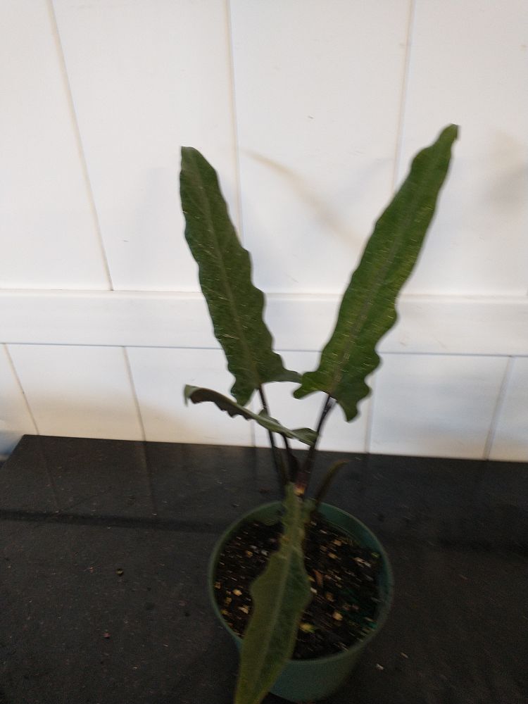 Overview: Alocasia lauterbachiana, also known as Purple Sword or Baroque Sword, is a striking tropical plant admired for its dramatic foliage and bold coloration. Native to Southeast Asia, this Alocasia features elongated, lance-shaped leaves with wavy edges, showcasing a rich green hue on the upper surface and a stunning deep purple underside. The leaves are supported by robust, dark stems, creating a visually captivating contrast. Alocasia lauterbachiana’s unique and dramatic appearance makes it a standout choice for plant enthusiasts seeking to elevate their plant collection with a touch of tropical splendor.