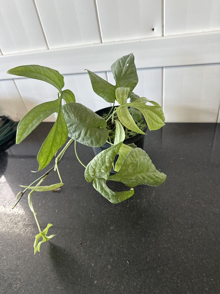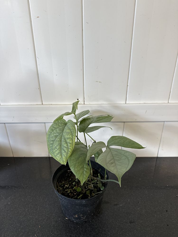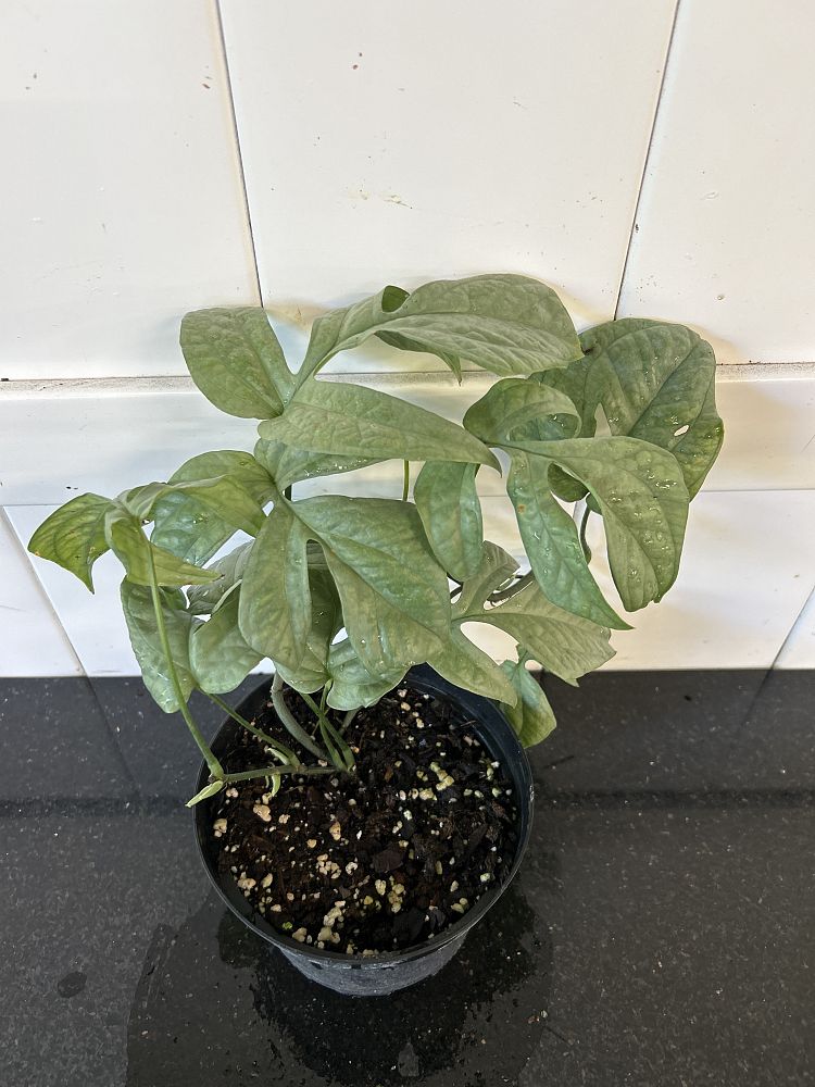 Overview: This one will have your spider senses tingling! Amydrium medium ‘Silver,’ a striking tropical aroid, captivates with its unique silver-green foliage. Originating from the rainforests of Southeast Asia, this plant is known for its elongated, fenestrated leaves that feature a stunning blend of silver and green hues. The intricate leaf patterns create an elegant, almost ethereal appearance, making it a standout addition to any plant collection. This climbing plant can reach heights of 4-6 feet with proper support, making it ideal for trellises or moss poles.