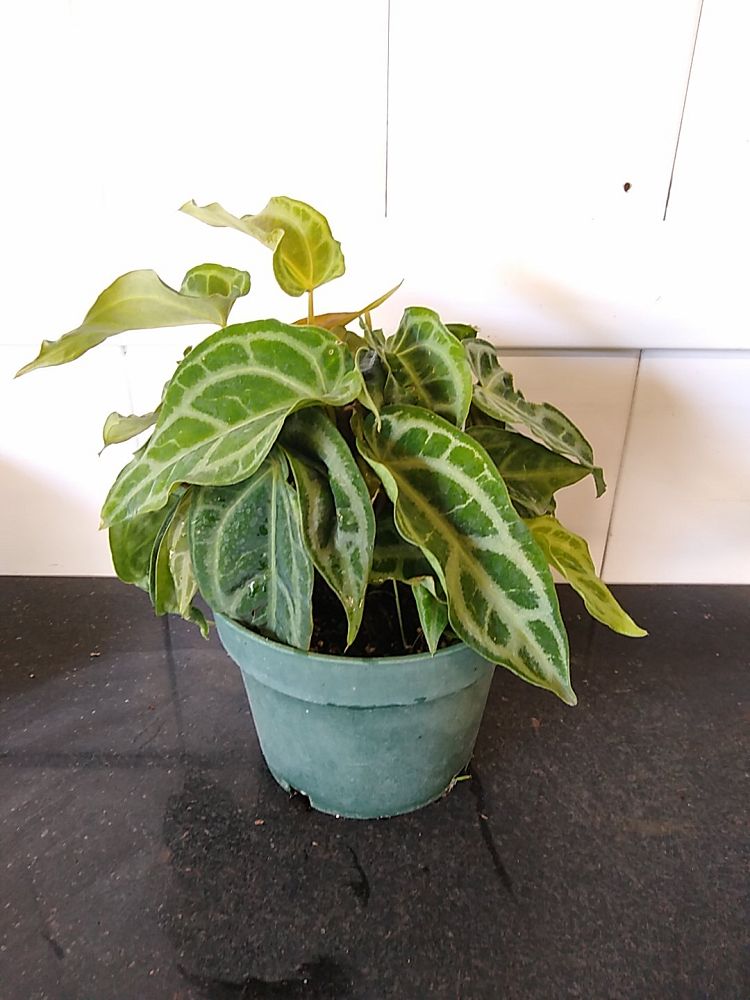 Overview: Anthurium ‘Selby’s Silver’ is a captivating variety of the beloved Anthurium family, distinguished by its exquisite foliage. Each heart-shaped leaf shimmers with a unique silvery sheen, patterned with contrasting deep green veins that create a striking visual effect. This rare and sought-after cultivar stands out in any indoor plant collection, bringing a touch of tropical elegance to your home or office.