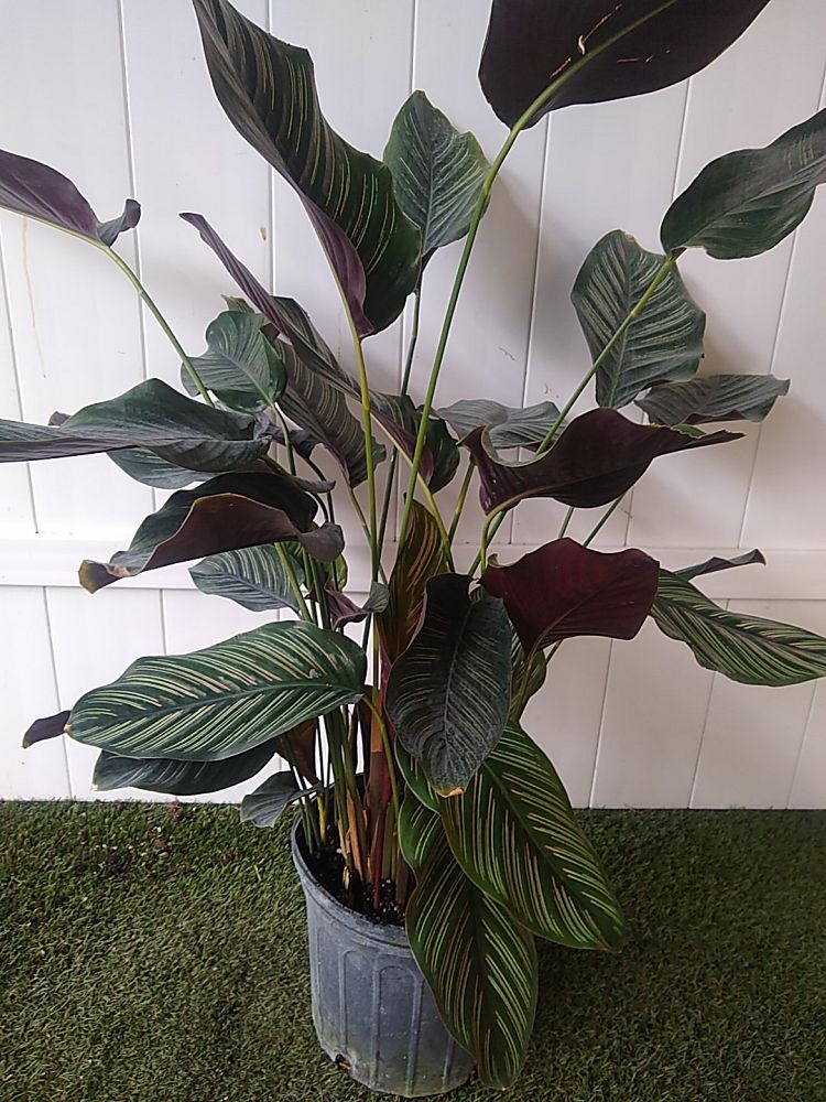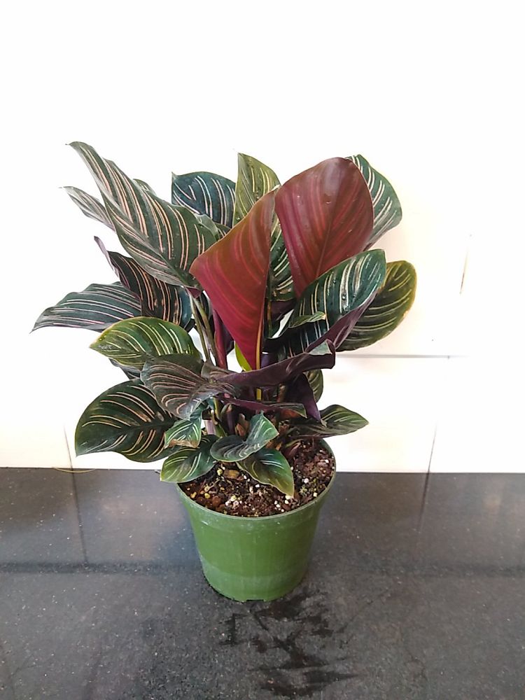 Native to South American rainforests, the Pin Stripe Calathea thrives when you keep it true to its natural habitat: no direct sunlight, high humidity and no exposure to cold. For best results, water regularly and keep your Pin Stripe moist, but not wet or saturated. You may want to mist the leaves twice weekly. Make sure to keep the Pin Stripe away from cold drafts and sudden temperature changes. The higher humidity in a kitchen or bath is a good spot for the plant if you’re keeping it indoors. It is possible to keep the Pin Stripe outdoors, especially on patios, porches or decks. It will add amazing hues to beds and borders.