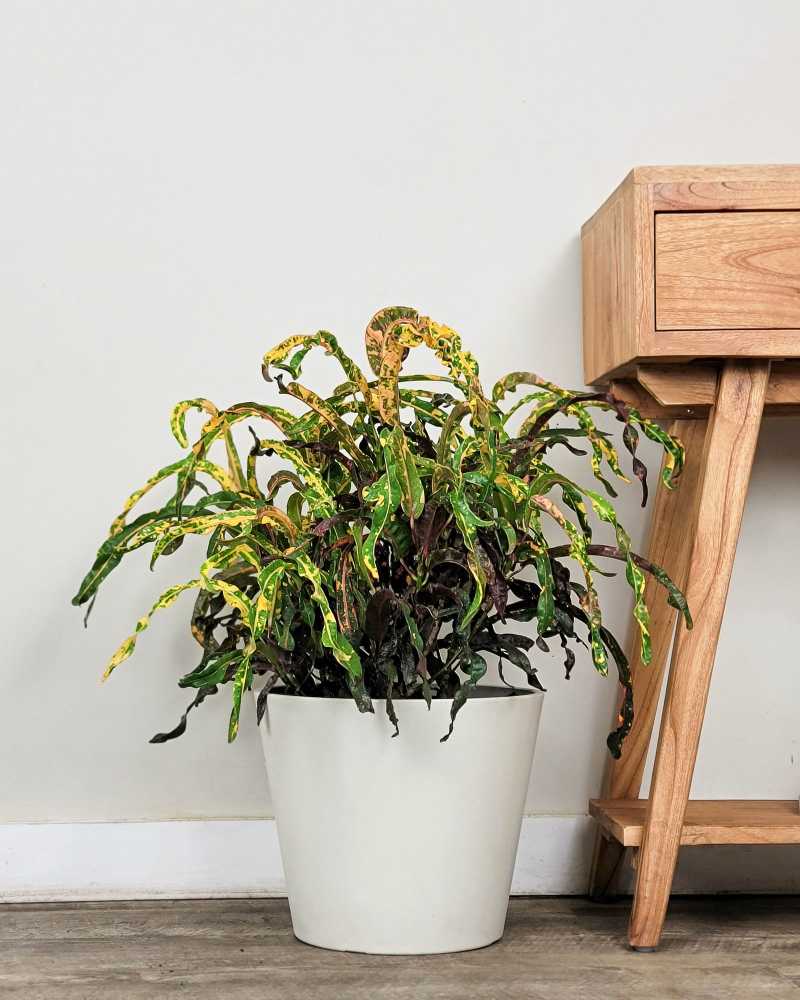 The Codiaeum variegatum, commonly known as the Croton plant, is a tropical evergreen shrub that’s revered for its eye-catching, multi-colored foliage. With leaves that boast an array of yellows, reds, greens, and purples, this plant serves as a living piece of art, enhancing the aesthetics of any indoor space. This guide will outline the essential care steps to ensure your Codiaeum variegatum not only survives but thrives.