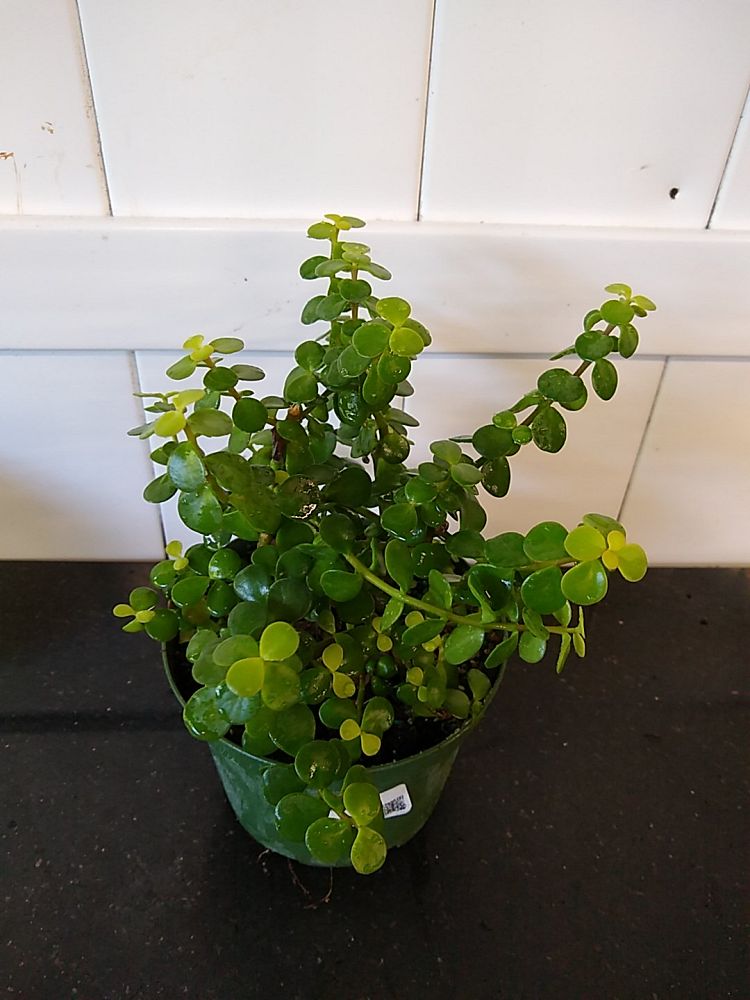 The vibrant Portulacaria afra ‘Aurea’ is a rare jewel among succulents that charms with its striking appearance and resilient nature. This South African native is distinguished by its green and golden-yellow variegated leaves, which dance along reddish-brown, cascading stems. Often mistaken for a jade plant, ‘Aurea’ sets itself apart with its unique color palette and shrubby growth pattern.