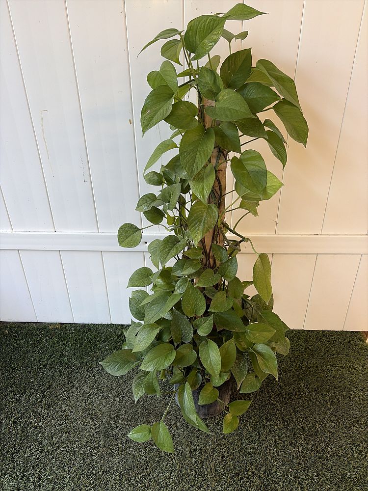 This is because the pothos vine is long, trailing, and heart-shaped, assuming the shape of an arrow. The leaf striations can sometimes have white, pale green, or yellow undertones. A mature-sized, large pothos can reach a length of up to 40 ft and is 3 to 6 feet in width.