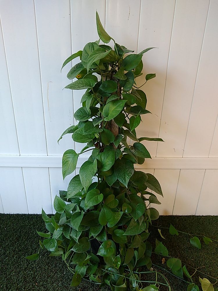This is because the pothos vine is long, trailing, and heart-shaped, assuming the shape of an arrow. The leaf striations can sometimes have white, pale green, or yellow undertones. A mature-sized, large pothos can reach a length of up to 40 ft and is 3 to 6 feet in width.