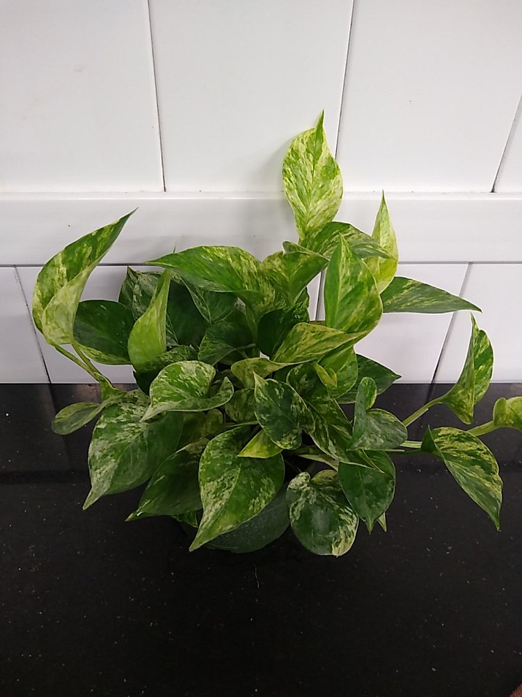 This is because the pothos vine is long, trailing, and heart-shaped, assuming the shape of an arrow. The leaf striations can sometimes have white, pale green, or yellow undertones. A mature-sized, large pothos can reach a length of up to 40 ft and is 3 to 6 feet in width.