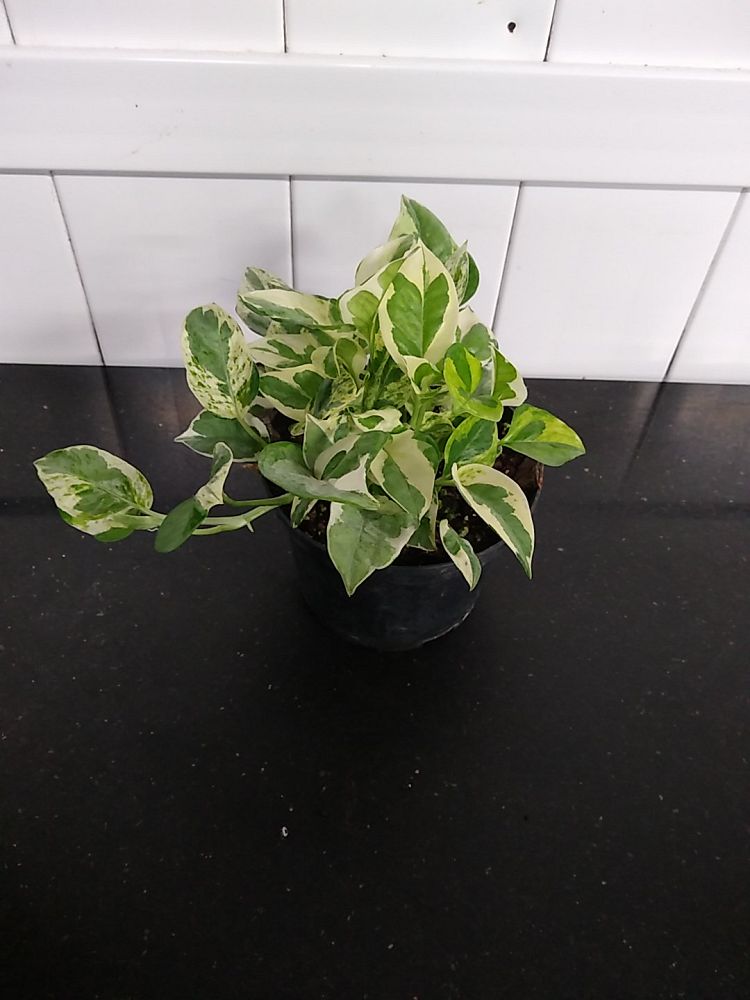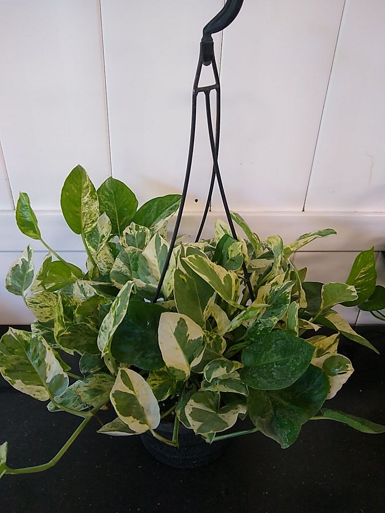 This is because the pothos vine is long, trailing, and heart-shaped, assuming the shape of an arrow. The leaf striations can sometimes have white, pale green, or yellow undertones. A mature-sized, large pothos can reach a length of up to 40 ft and is 3 to 6 feet in width.