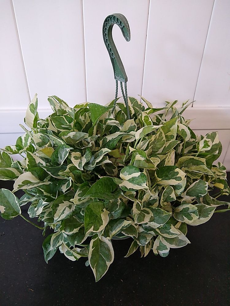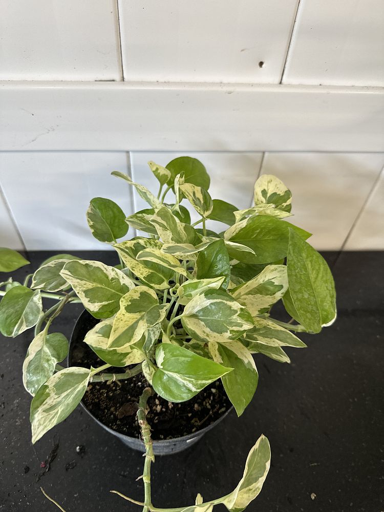This is because the pothos vine is long, trailing, and heart-shaped, assuming the shape of an arrow. The leaf striations can sometimes have white, pale green, or yellow undertones. A mature-sized, large pothos can reach a length of up to 40 ft and is 3 to 6 feet in width.