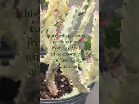 The White Ghost Cactus is characterized by its spherical or slightly elongated shape, often reaching a diameter of 4 to 6 inches (10 to 15 centimeters) at maturity. Its distinctive feature is its lack of chlorophyll, resulting in a pale, almost translucent appearance. This cactus typically has numerous ribs adorned with small, spineless tubercles, giving it a smooth texture. The lack of chlorophyll gives the cactus its unique white or pale yellow coloration, making it stand out among other succulents. Additionally, the White Ghost Cactus may produce delicate pink or yellow flowers in the spring or summer, adding a touch of beauty to its ghostly appearance.