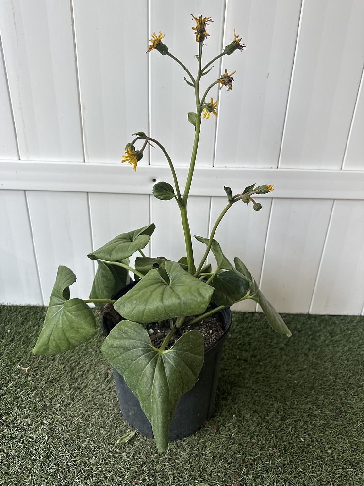 Overview: The Farfugium japonicum ‘Gigantea’ is a striking perennial plant renowned for its large, glossy, rounded leaves that can reach up to 12 inches in diameter. Originating from Japan, this cultivar, also known as Giant Leopard Plant, adds a bold presence to any garden or indoor space with its dramatic foliage and unique aesthetic. Its vibrant green leaves are accented by conspicuous yellow or creamy white spots, creating a captivating contrast. Ideal for shaded areas, Farfugium japonicum ‘Gigantea’ thrives in moist, well-drained soil and benefits from regular watering to maintain its lush appearance. This low-maintenance plant is perfect for adding a touch of tropical flair to gardens, patios, or indoor spaces, making it a popular choice among plant enthusiasts