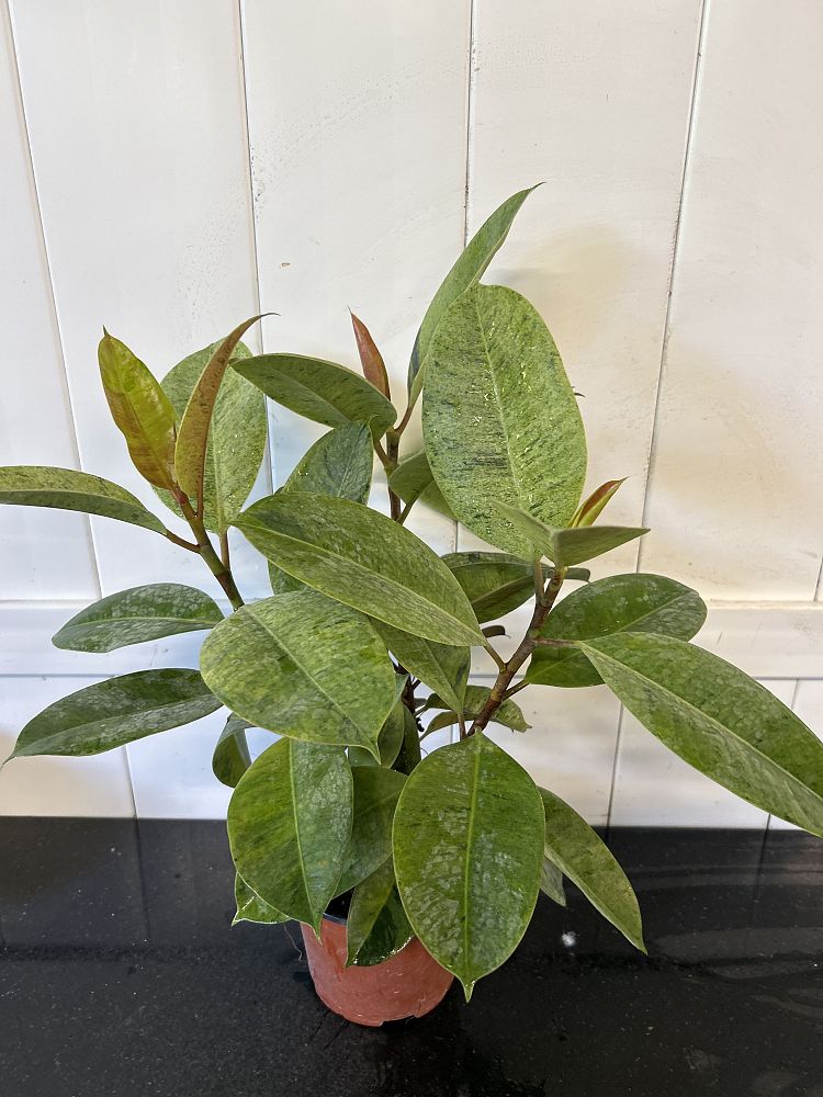 The Indian Rubber Tree prefers higher humidity levels, so mist the leaves regularly or place the plant on a tray filled with pebbles and water.