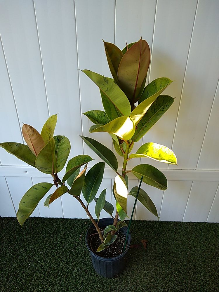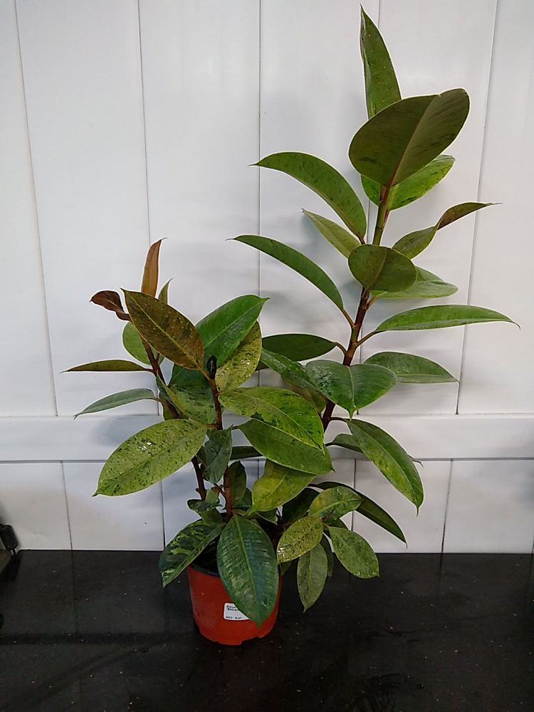 The Ficus elastica ‘Shivereana’, commonly known as the Variegated Rubber Plant, is a mesmerizing addition to any indoor plant collection. Originating from the lush rainforests of Southeast Asia, this variant stands out with its stunning foliage, characterized by a mottled pattern of green, cream, and pink hues.