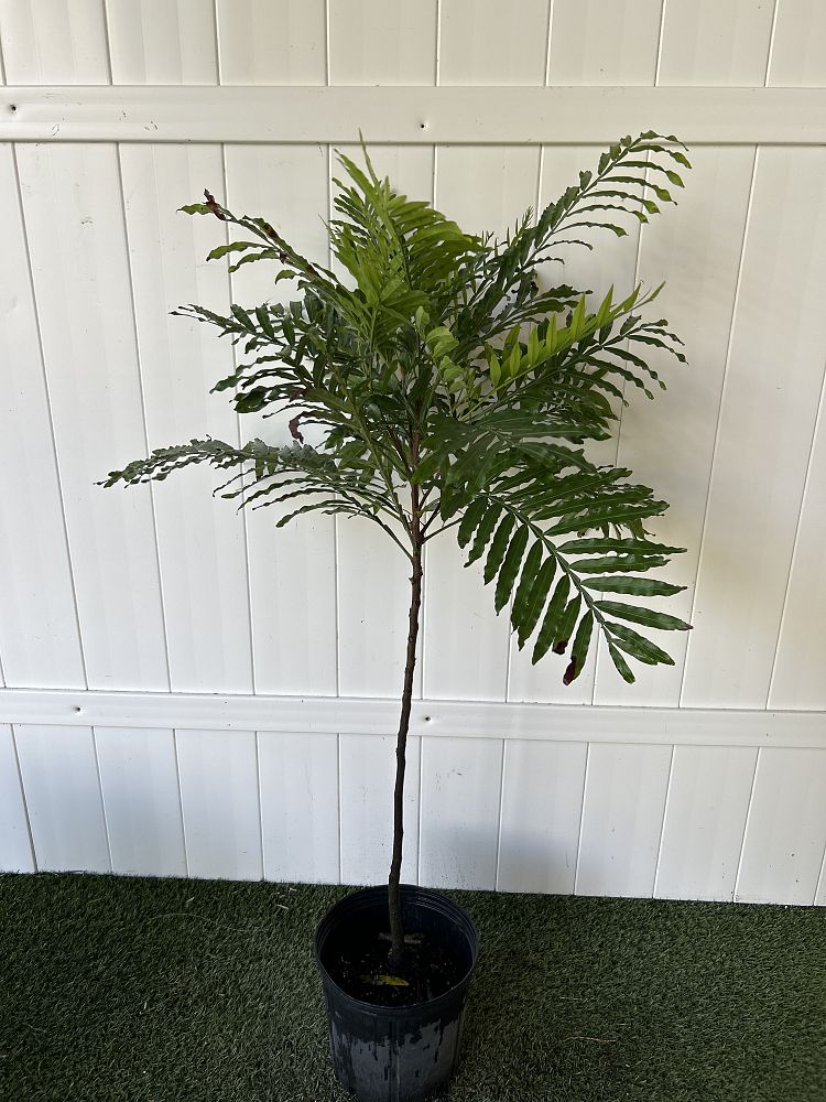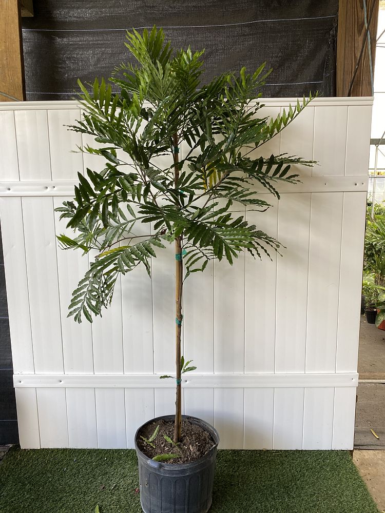 The Japanese Fern Tree is neither Japanese, nor a fern. What is it? It’s a lovely, bushy evergreen whose long thin fern-like leaves grow out from its stems. The tree’s symmetrical globe-like top offers dense shade wherever you plant it. (And, just in case you were wondering, it is originally from India and East Africa.)