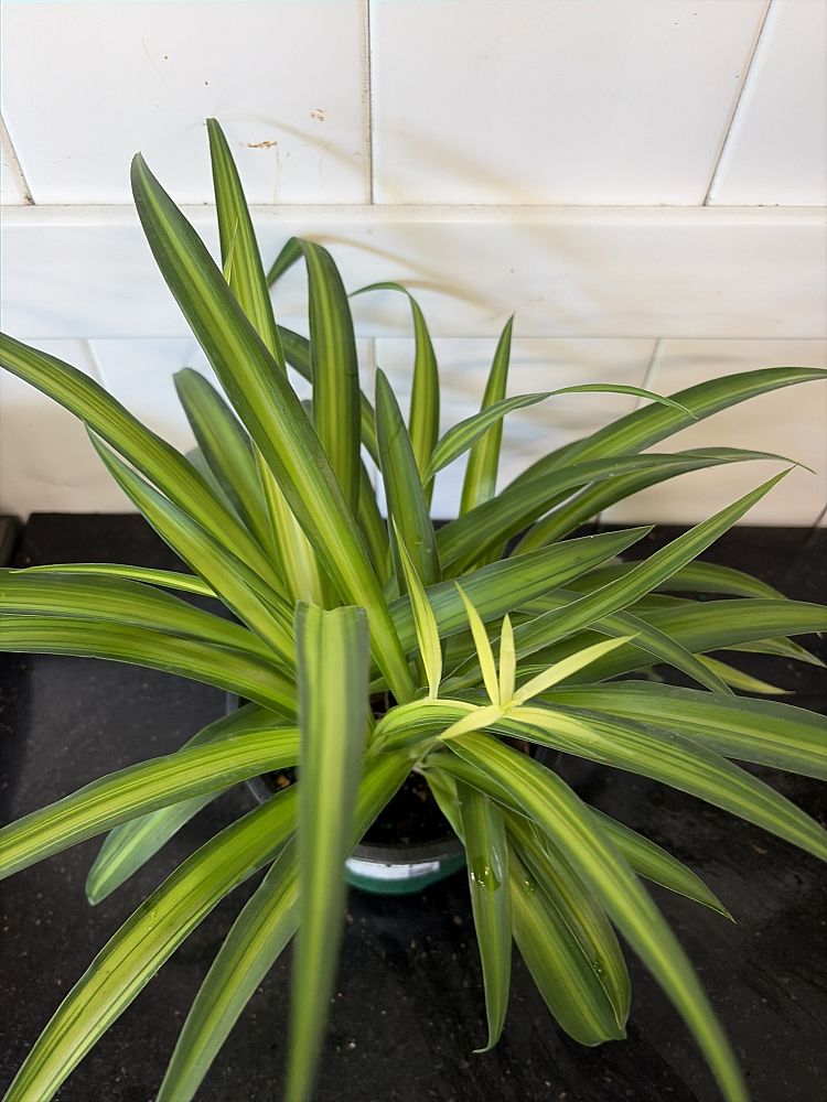 I have been gifted some solid green spider plants that I love. They are coming along, but I really want a bushier one and the variegation on this was calling out to me.