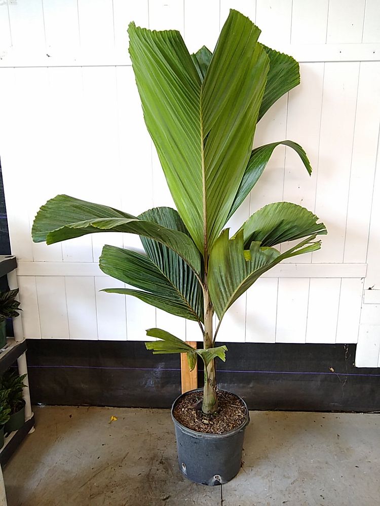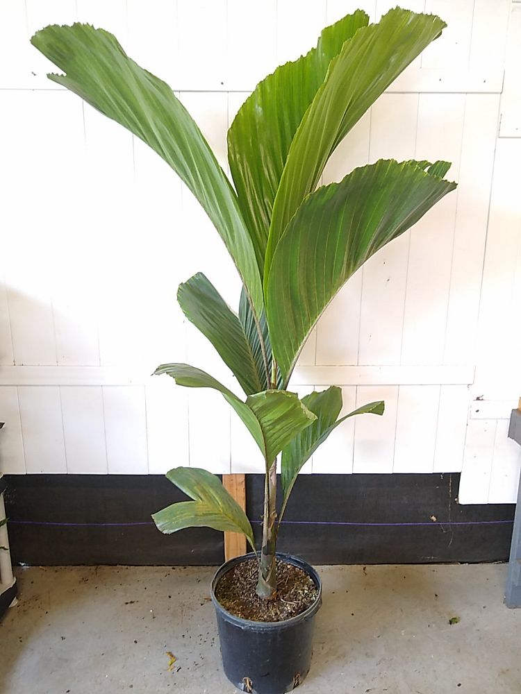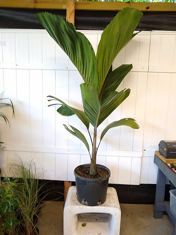 Want something really cool and unique that everyone will envy? The Hydriastele beguinii ‘ Obi Island’ is a spectacular palm with very distinctive solid (non-split) leaves. Originally from the Obi Islands in Indonesia, this rare and unusual palm is slow growing and makes a bold statement as an indoor palm or garden specimen. This palm is a better option than others for tight spaces because of its somewhat slender form. Its neat look and glossy dark green foliage scream tropical rainforest. I found a very limited number of these in a shippable size. Each one is about 6ft tall in a 14” pot.