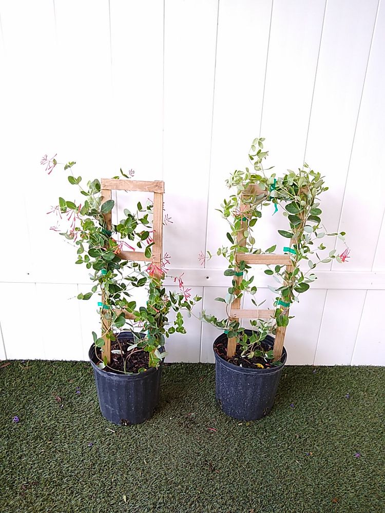 Overview: Experience the vibrant beauty of Lonicera sempervirens, commonly known as Coral Honeysuckle or Trumpet Honeysuckle. This native North American vine is a favorite among gardeners for its clusters of tubular, coral-red flowers that attract hummingbirds, butterflies, and bees throughout the blooming season. The trumpet-shaped blossoms emit a sweet, intoxicating fragrance, filling the air with their delightful scent. Lonicera sempervirens features evergreen foliage that provides year-round interest, making it a versatile addition to trellises, fences, and arbors. With its vigorous growth habit and ability to thrive in a variety of soil types and light conditions, this easy-to-grow vine is perfect for adding vertical interest and a burst of color to any garden or landscape.