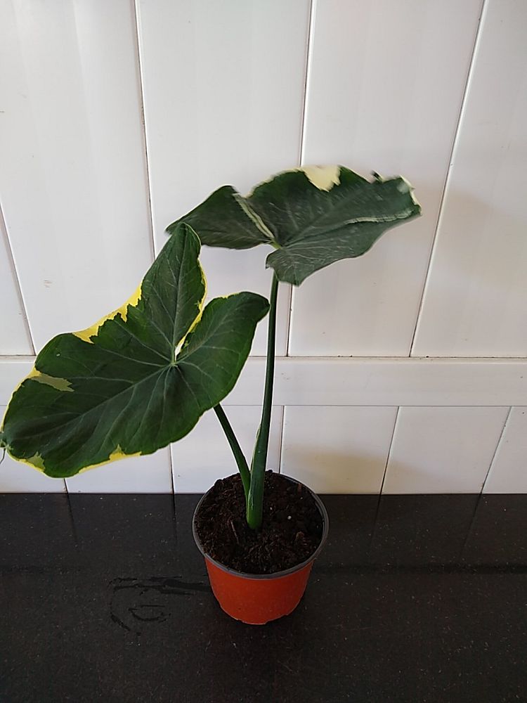 The Alocasia xanthosoma ‘Variegata’, also known as the Variegated Elephant Ear, is a truly exotic specimen that captures the essence of tropical beauty with its striking foliage. This rare variety boasts large, heart-shaped leaves that are a spectacle of variegation, featuring vibrant splashes of white and light green against a dark green backdrop. Native to the rainforests of South America, this plant’s dramatic leaves are not only visually stunning but also serve as a bold statement piece in any indoor garden.
