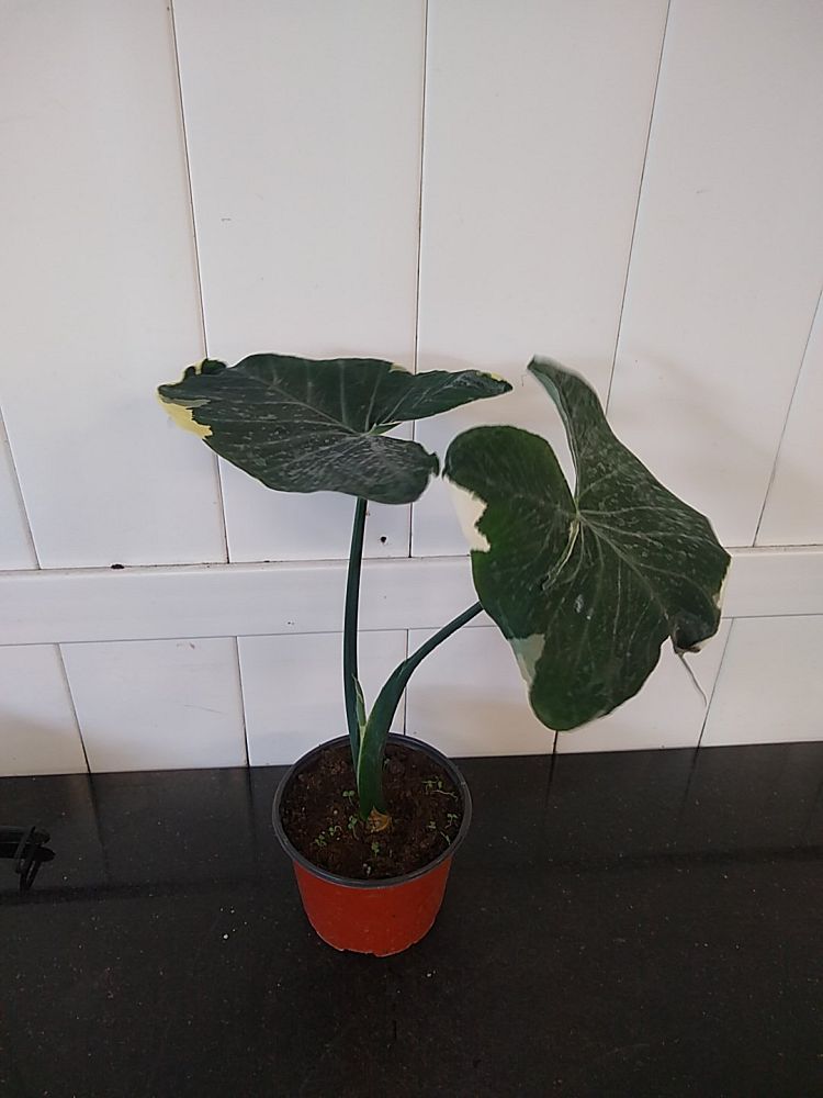 The Alocasia xanthosoma ‘Variegata’, also known as the Variegated Elephant Ear, is a truly exotic specimen that captures the essence of tropical beauty with its striking foliage. This rare variety boasts large, heart-shaped leaves that are a spectacle of variegation, featuring vibrant splashes of white and light green against a dark green backdrop. Native to the rainforests of South America, this plant’s dramatic leaves are not only visually stunning but also serve as a bold statement piece in any indoor garden.