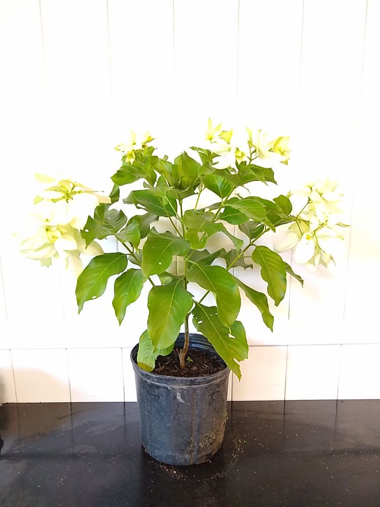 The bush can grow from 2 to 15 ft. It prefers part shade to full sun. Make sure to keep soil consistently moist. If temperatures begin to dip below 50 degrees, it’s best to bring the plant indoors.