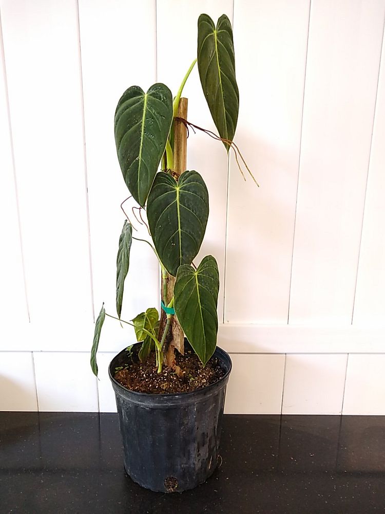 Overview: The Black Gold Philodendron is an alluring indoor plant cherished for its striking appearance. Its glossy leaves unfurl in a rich, dark green color, almost appearing black, and mature to showcase stunning gold veins, providing a dramatic contrast. This tropical foliage plant, native to South America, thrives in bright, indirect light and prefers consistently moist, well-draining soil, emulating its native rainforest environment. The plant’s vining habit makes it a fantastic addition to a hanging basket, trellis, or as a climbing plant on a moss pole.