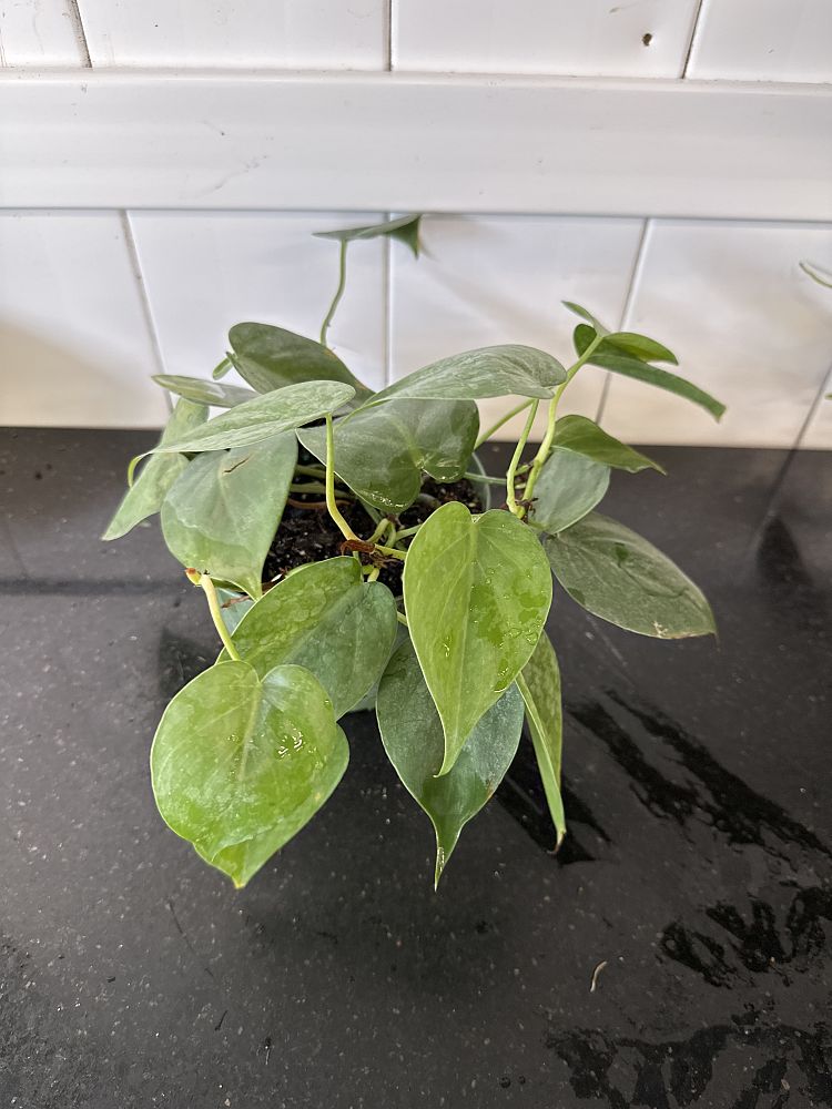Overview: The Heart-Leaf Philodendron (Philodendron hederaceum) is a classic and beloved houseplant known for its lush, trailing vines and charming, heart-shaped leaves. This tropical beauty features glossy, dark green foliage that is ideal for both beginners and experienced plant enthusiasts. The Heart-Leaf Philodendron thrives in a variety of lighting conditions, from bright, indirect light to low light environments and is perfect for hanging baskets, shelves, or climbing trellises, creating a cascading green display.