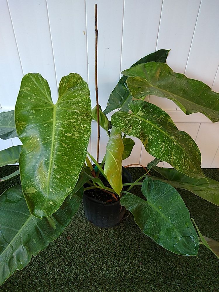 So beautiful and large. Love the white and green leaves Big and putting out new growth.