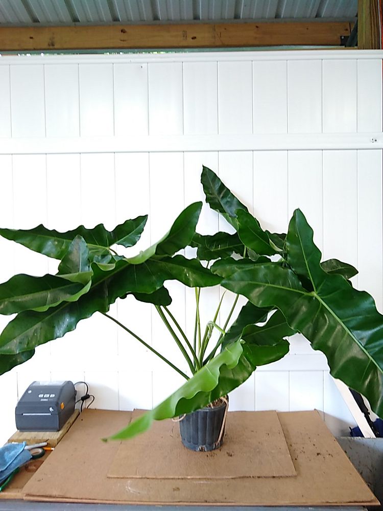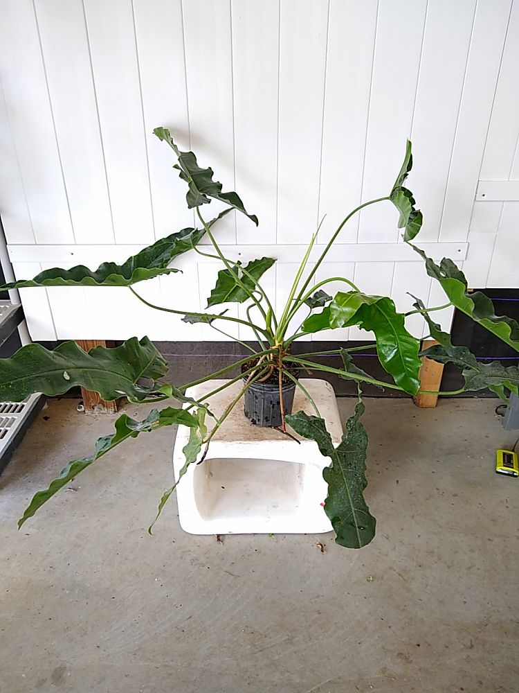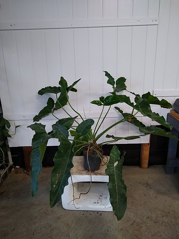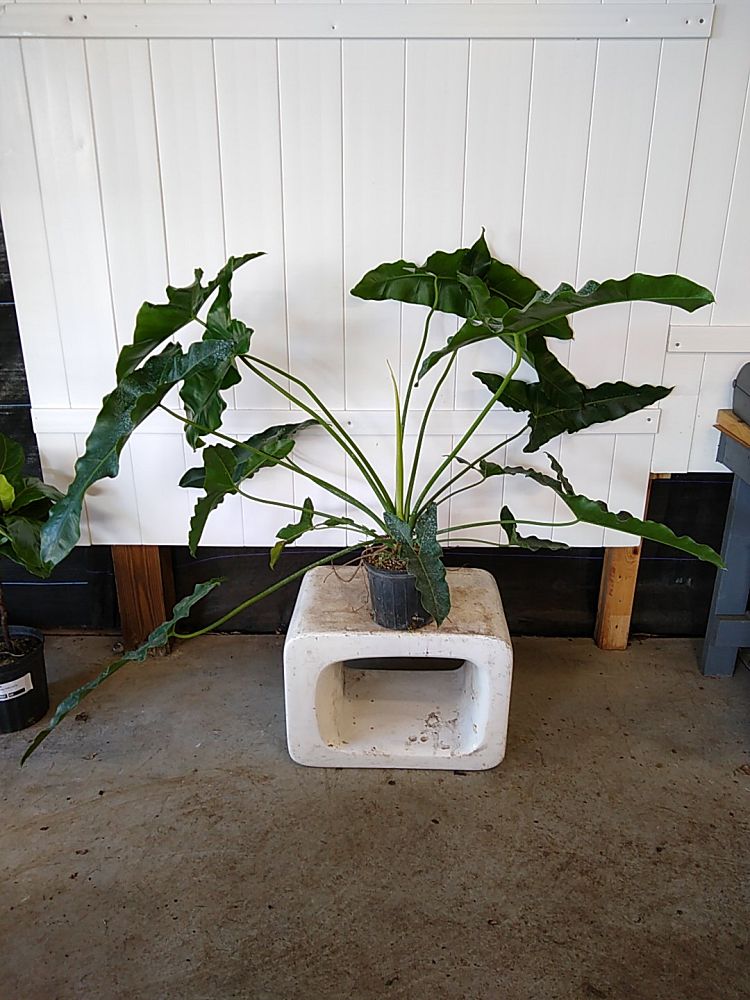 This Brazilian plant was once named, and is still referred to, as a Philodendron Stenolobum. It’s drop dead gorgeous with long scalloped leaves which can get up to 3 feet long! This is a collector’s item, especially the ones with narrow leaves like this. It’s considered to be a self-header and not a climber, which means it tends to stay on the ground and become a big, beautiful butterball of a plant. These oversized plants were forgotten at a nursery and are bursting out of their little pots. Plants of this size should be in a 10” pot, not the tiny 4” pots they’re currently in.
