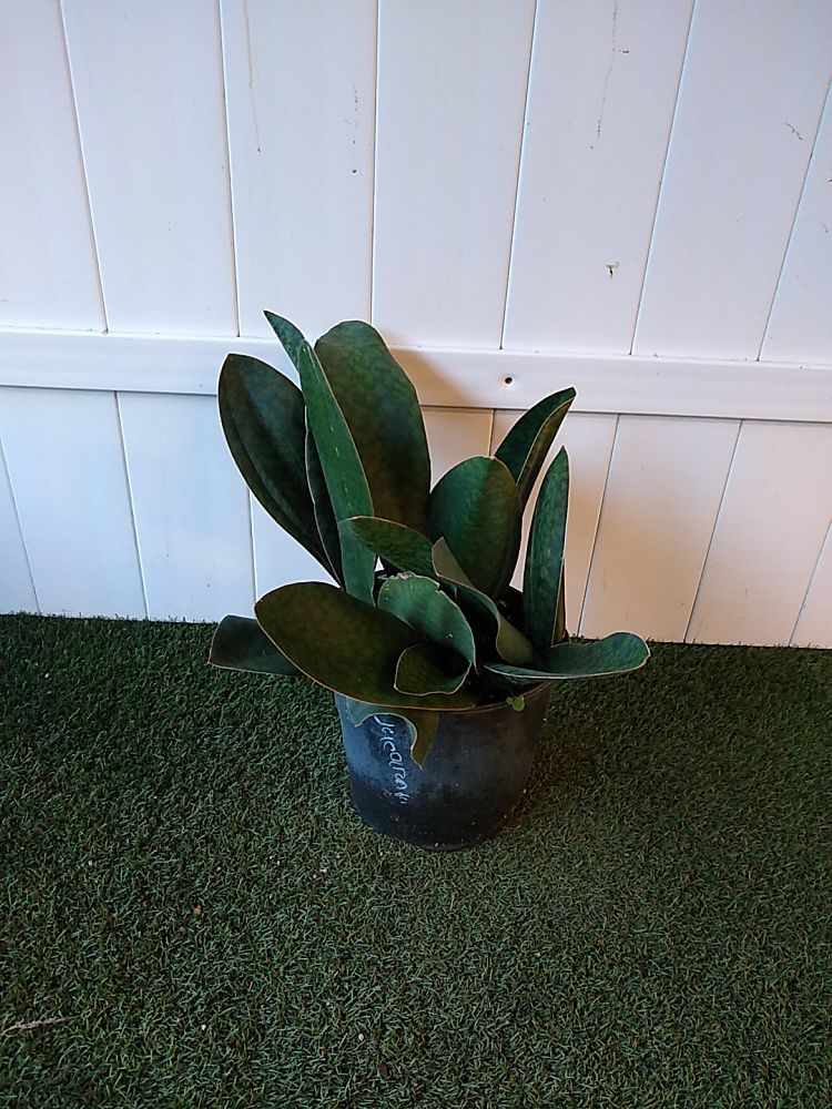 The Whale fin is a member of the Agavaceae family and a succulent originating from the tropical regions of Central Africa and Congo. The plant grows a single dark green leaf with a leathery texture ranging from 2 to 4 feet in height and 4 to 5 inches in width.