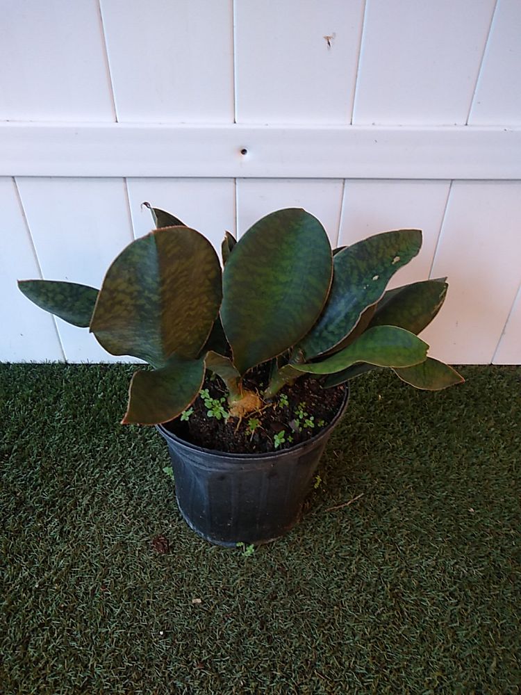 The Whale fin is a member of the Agavaceae family and a succulent originating from the tropical regions of Central Africa and Congo. The plant grows a single dark green leaf with a leathery texture ranging from 2 to 4 feet in height and 4 to 5 inches in width.