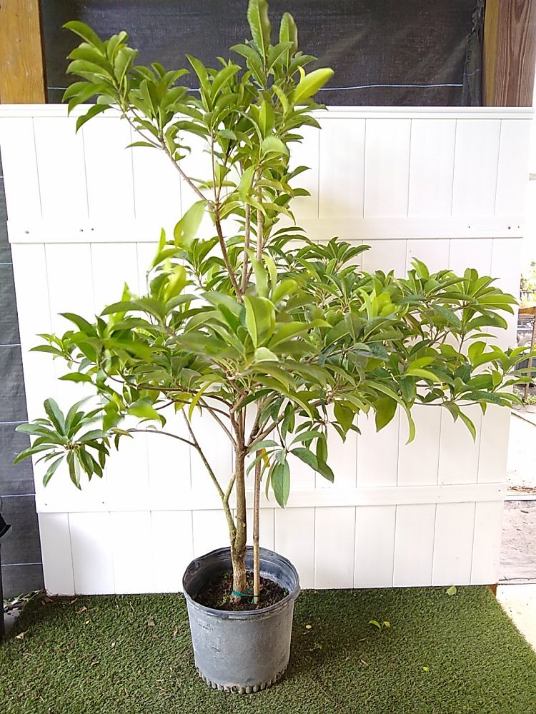 Overview: The Sapodilla Tree (Manilkara zapota) is a tropical evergreen tree prized for its delicious, sweet fruit and attractive foliage. Native to southern Mexico, Central America, and the Caribbean, this tree can reach heights of 30-60 feet when grown outdoors, though it remains more compact in container cultivation. The Sapodilla produces oval-shaped, glossy green leaves and small, bell-shaped flowers that give way to its delectable, brown, kiwi-like fruit. Sapodilla fruits have a sweet, malty flavor, often described as a mix of pear, brown sugar, and honey, making them a delightful treat.