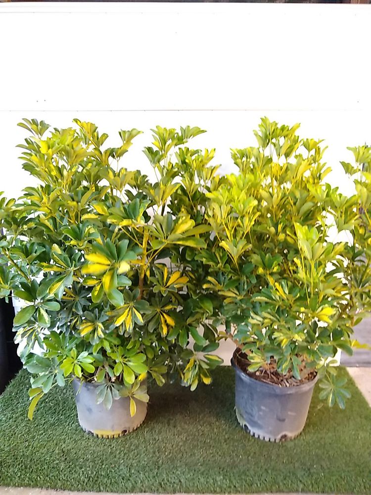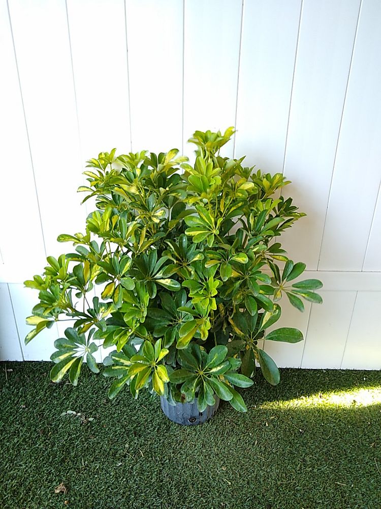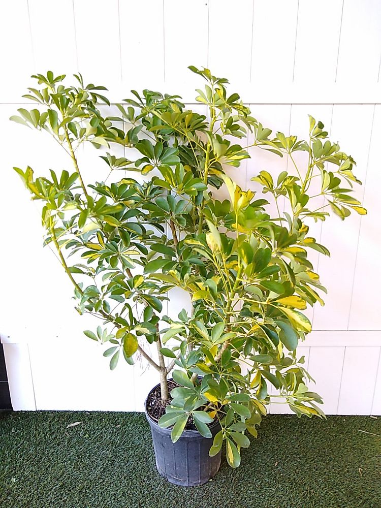 If left to grow tall, the Schefflera will lose its lower leaves, leaving a straight trunk and a large “top” – which is why this tropical beauty is often called the Umbrella Tree. Its large shiny leaves grow in clusters, giving the plant a rounded form that smart landscapers often use to hide something, like an air conditioning unit, meters on a wall, or even the view into the backyard. Strong winds may cause damage, so it’s best to plant in a protected location. Outdoors, this plant can grow extremely tall, so be sure to keep trimming to your preferred height.