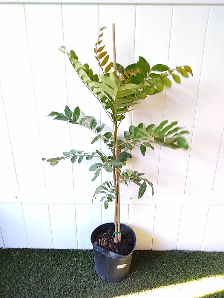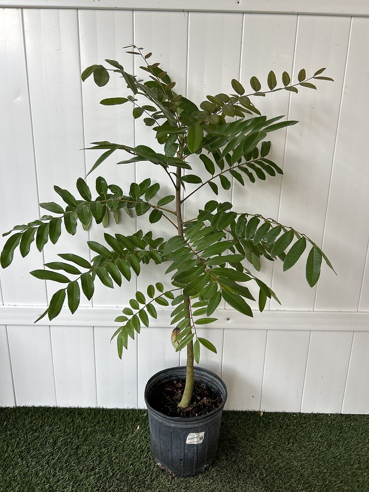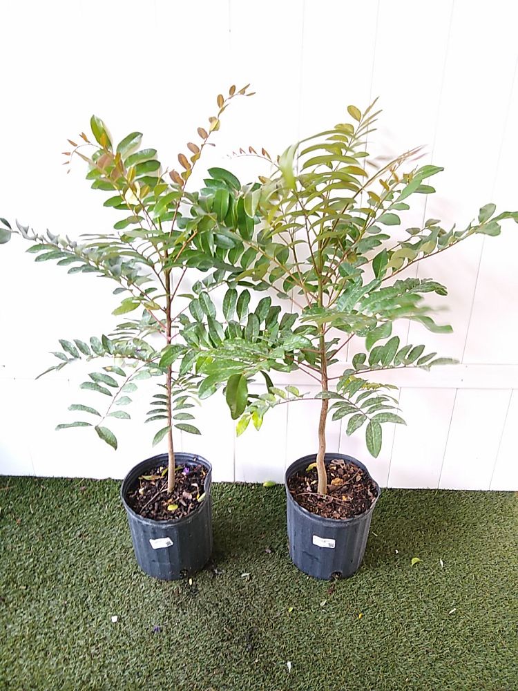 The Paradise can reach a height of 50 ft., and showcases a dense rounded crown at maturity. Tiny white springtime blooms are followed by small clusters of dark purple, edible fruits. Some homeowners find its seeds and fruits messy, and staining to surfaces, but these are much loved by bees and birds. Its shallow root system may cause problems to sidewalks, so be sure to plant away from walkways. Highly salt tolerant, the Paradise is a good choice for coastal areas – and it will hold up well in high winds. They’ll thrive in semi-shade, and prefer moist or wet soil.
