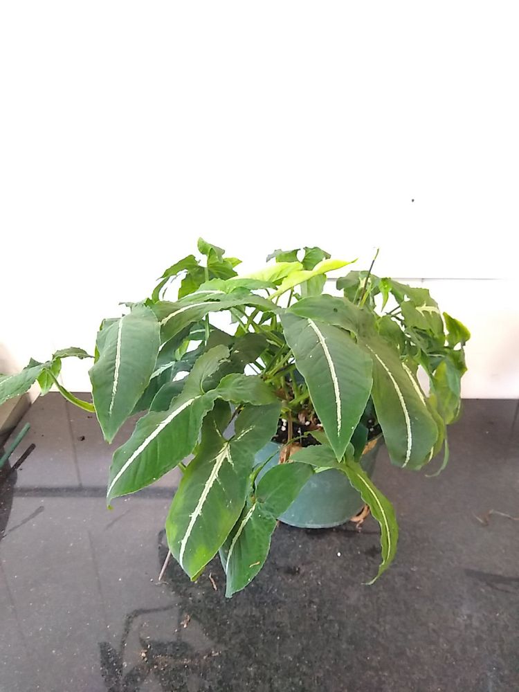 Overview: The Syngonium Wendlandii, also known as Silver Goosefoot, is an easy-to-care-for indoor plant, ideal for beginners. It thrives in temperatures between 15-30 degrees Celsius and prefers a humidity level of 60-80% during the growing season. Known for its beautiful silver-green foliage, it can be maintained as a compact, bushy plant or encouraged to grow tall on a moss stick. Its creeping nature means it gradually takes over adjoining areas, adding to its charm.