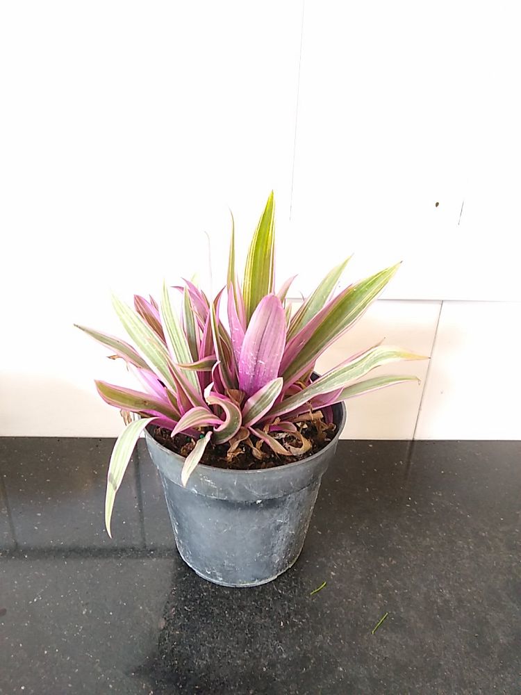 Overview: Tradescantia spathacea ‘Tricolor’, commonly known as Moses in the Cradle, is a stunning tropical plant prized for its vibrant foliage and easy care. Originating from Mexico and Central America, this evergreen perennial features lance-shaped leaves with striking variegation, including shades of green, purple, pink, and cream.