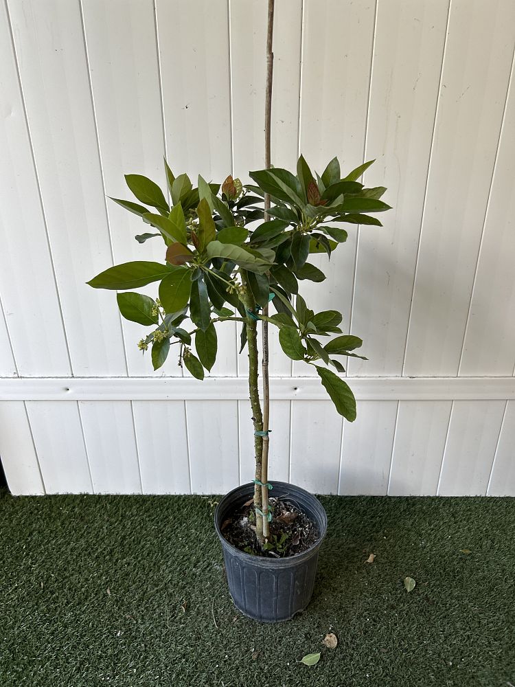 The Persea americana tree is an evergreen, medium to large-sized tree, capable of reaching heights of up to 20-30 feet when mature. Its dense, glossy foliage consists of elliptical leaves, ranging from light to dark green depending on the variety. The tree’s growth habit can vary from upright to spreading, with some cultivars exhibiting a more compact, bushy form ideal for container gardening.